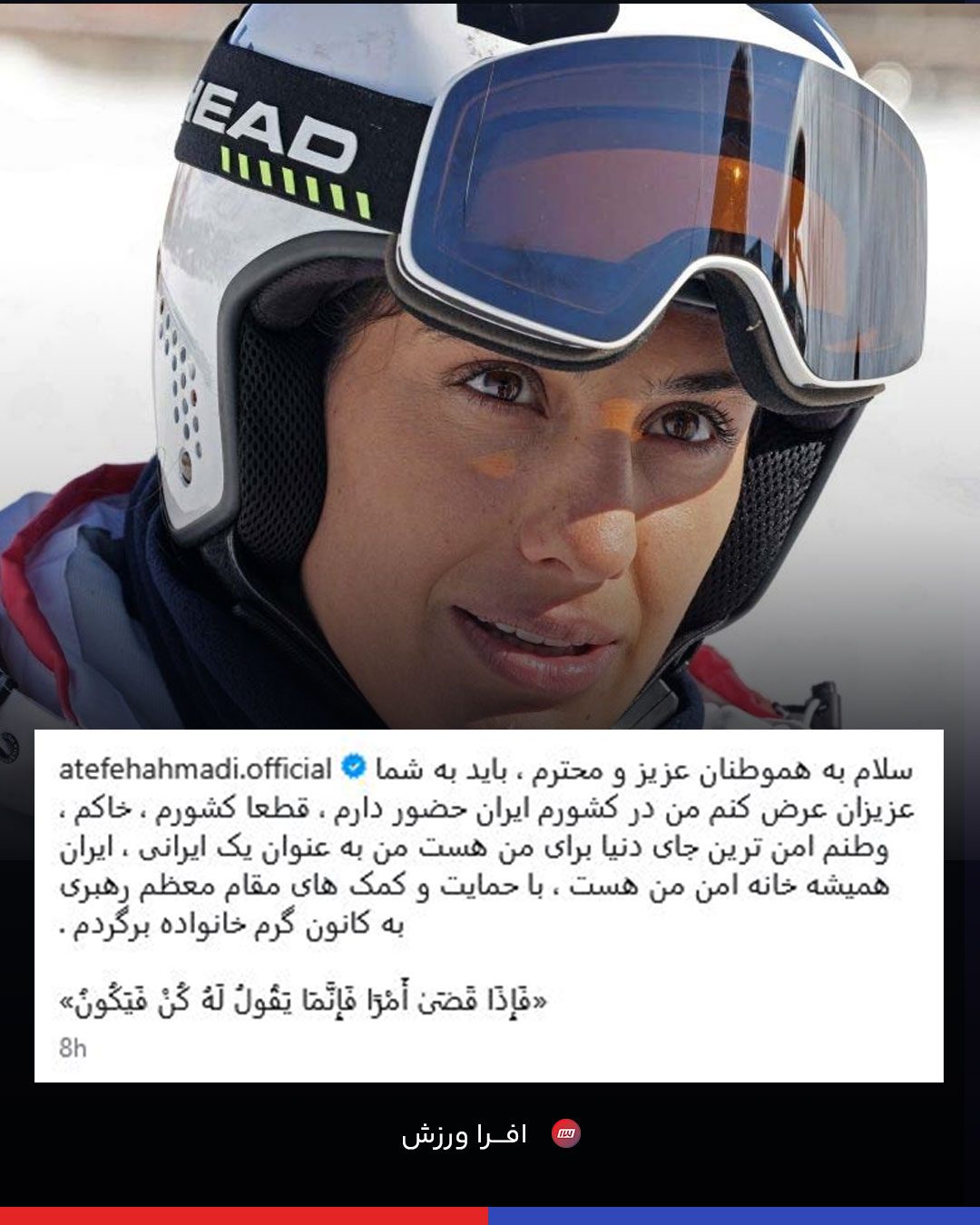 عاطفه احمدی، ملی‌پوش اسکی آلپاین، سه سال پس از پناهندگی و اقامت در آلمان، با انتشار پیامی در اینستاگرام اعلام کرد که به ایران بازگشته است.