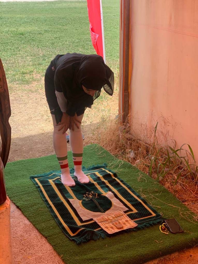 خاتونی که یکی از رکابزنان شاخص لیگ محسوب می شود در خلال برگزاری لیگ دوچرخه سواری زنان به اقامه نماز پرداخت و عبادت را در روز مسابقه هم ترک نکرد.